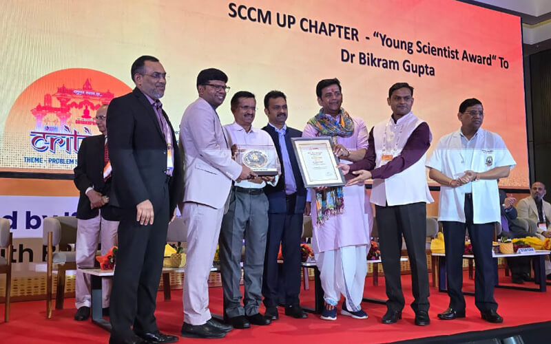 Hon’ble Shri Ravi Kishan Ji, Member of Parliament (Gorakhpur), and Hon’ble Shri Kamlesh Paswan Ji, Minister, Government of Uttar Pradesh conferred this prestigious award on Professor Bikram for his commitment to academics and science of Acute Care.